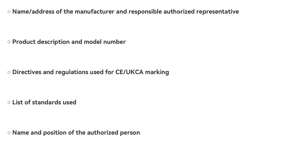 When a manufacturer signs a Declaration of Conformity, they declare that the product has been designed and manufactured in accordance with the appropriate conformity assessment requirements and accept full responsibility for its compliance with UK safety standards. This includes (but is not limited to) the following product groups: